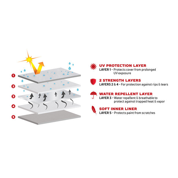 Our most popular all-weather car cover is the go-to for vintage car enthusiasts to new car owners. This premium vehicle cover features 5-layers of protection to provide superior defense against the elements while being smooth against your paint finish.