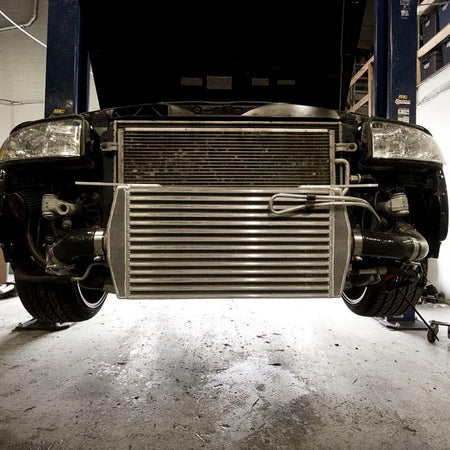 The CTS B6 A4 FMIC kit allows maximum airflow to the FMIC reducing heat soak conditions, the stock FMIC can become heat soaked very fast when boost pressures are increased over stock levels.