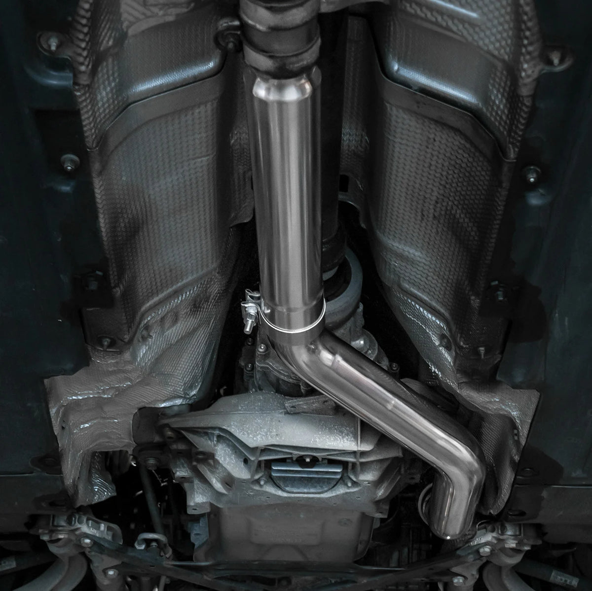 Our non-resonated downpipe is designed to seamlessly fit in place of your restrictive stock front muffler pipe, which is situated immediately after your Catalytic converter/Test Pipe/HFC.