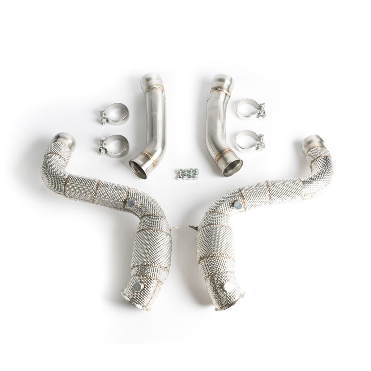 - 3″ downpipes with 200 cell high-flow catalytic converters