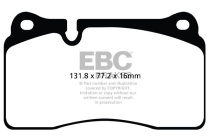 There are TWO reasons our customers love Redstuff, First because they are the lowest dust pad we have encountered by reducing dust by 60-90-percent. Plus the minimal dust you see is very easily removed with a simple sponge wash as it contains no steel fibre particles as in ALL OTHER pads. Second they brake like an alligator right from cold (as good as Original pads or better) and just get better as they heat up.This material is a Synthetic Fiber based brake compound enhanced with ceramic particles. If you have previously tried EBC redstuff (pre-ceramic compound) this material is light years ahead. It lasts longer; it brakes better and is quieter. Being a hard wearing pad, bed-in times can be as long as 1000 miles and drivers must be patient until the pad takes up the shape of their disc (brake rotor). This is a truly impressive fast road pad for repeated heavy braking. It emits far less dust than semi-metallic pads and has been proven to stop a passenger car/sedan/sport compact/hot hatch 13 metres quicker than OEM pads from 100mph/160kph. Features EBC Brake-In surface coating which conditions rotor surface and accelerates pad bed-in. Nominal friction coefficient 0.5 with approx. 50-percent dust reduction. Most EBC Red Ceramic pads are approved to ECE R90 brake safety regulation.