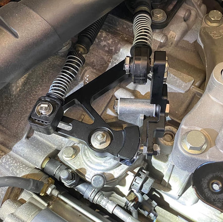 Throw Reduced Shift travel can be reduced between 20% and 35% by adjusting the pin position. This kit greatly improves the feel of the stock setup with a more aggressive and precise engagement.