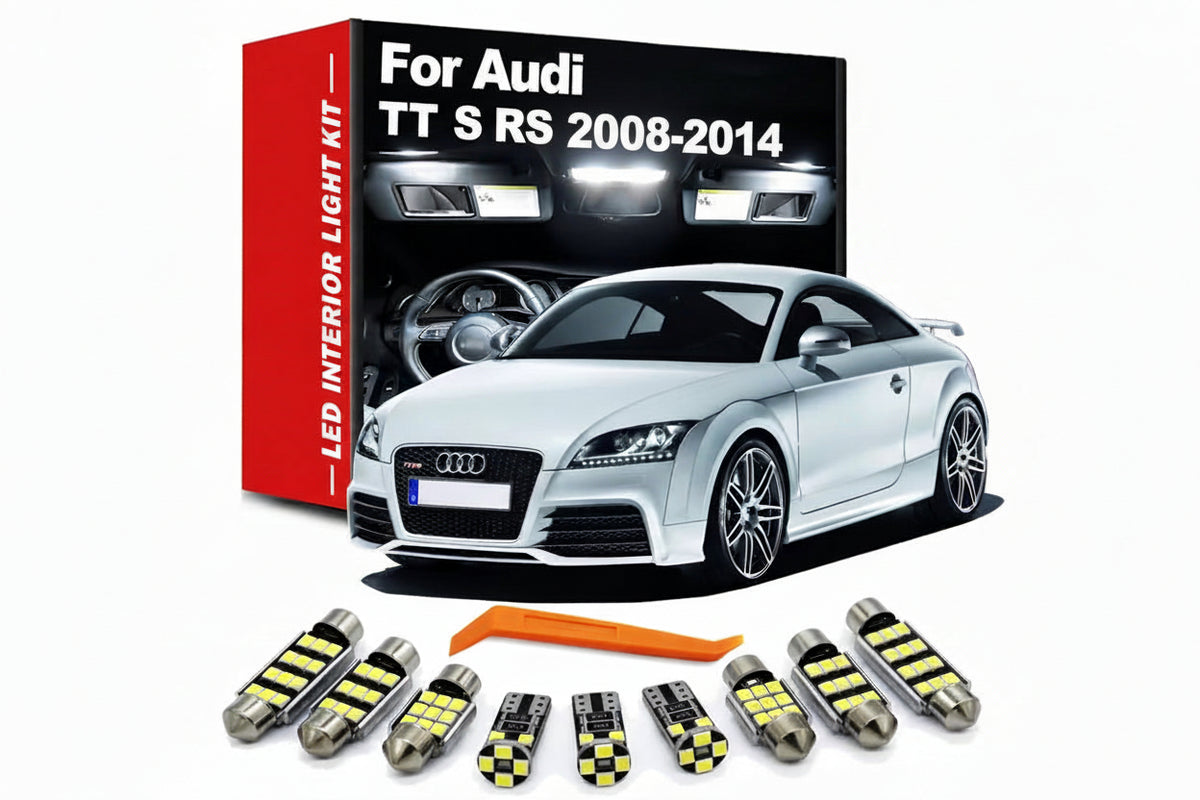 Give your 2008-2014 Audi TT TTS TTRS Mk2 a fresh new interior upgrade with the German Auto Stuff LED Interior Light Kit. 3 times brighter than the factory original bulbs, providing a noticeably improved interior lighting experience. 100% CAN bus error free design guarantees compatibility with your Audi's electrical system. Long lasting performance, direct replacement to the original bulbs. It's the perfect upgrade to bring your TT's interior lighting to current standards.
