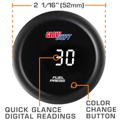 Cars and trucks that run on low fuel pressure were a lot more common a few decades back. Over time, as engines demanded more, fuel pressure levels also became higher. However, with the value and interest in older and classic models, low pressure fuel systems are still seen today. GlowShift’s 30 PSI Digital Fuel Pressure Gauge is optimal for any driver looking to upgrade their factory fuel pressure gauge to a bright digital LED version. It can also be installed to older vehicles that didn’t have this gauge on the factory dash.