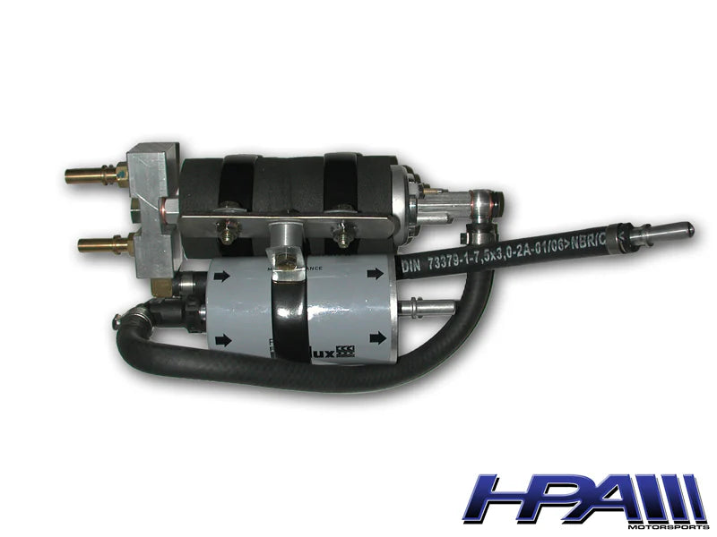 A fuel bowl adaptor (to be welded onto your factory fuel rail) will house the included 4.0bar FPR. HPA also includes a relay pack and harness to ensure that the correct voltage is supplied for the in-line pump.