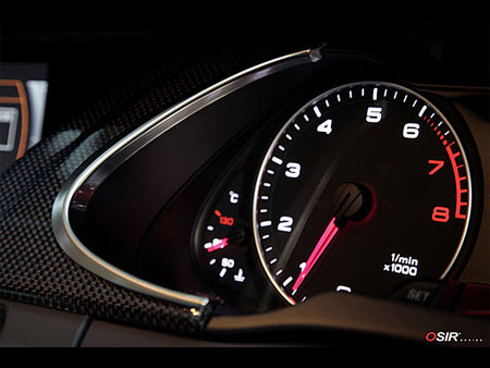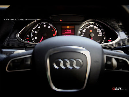 OSIR Design add-on dash cluster trim for the Audi A4. Matte chrome finish for a perfect match. Pre-applied 3M double sided tape. Easy installation.