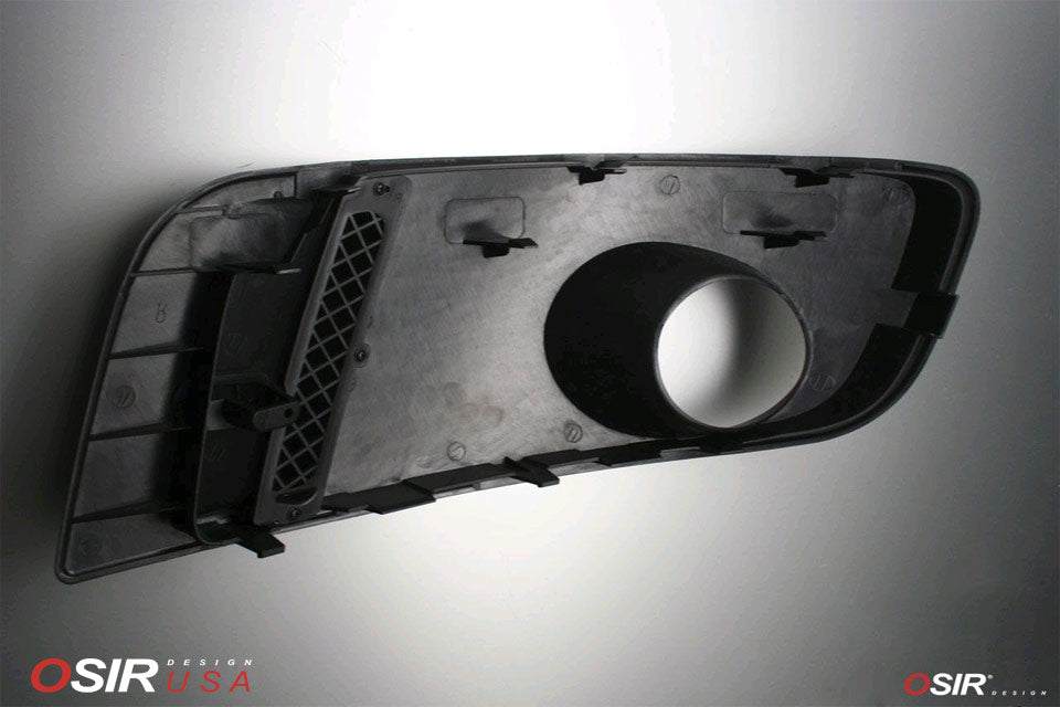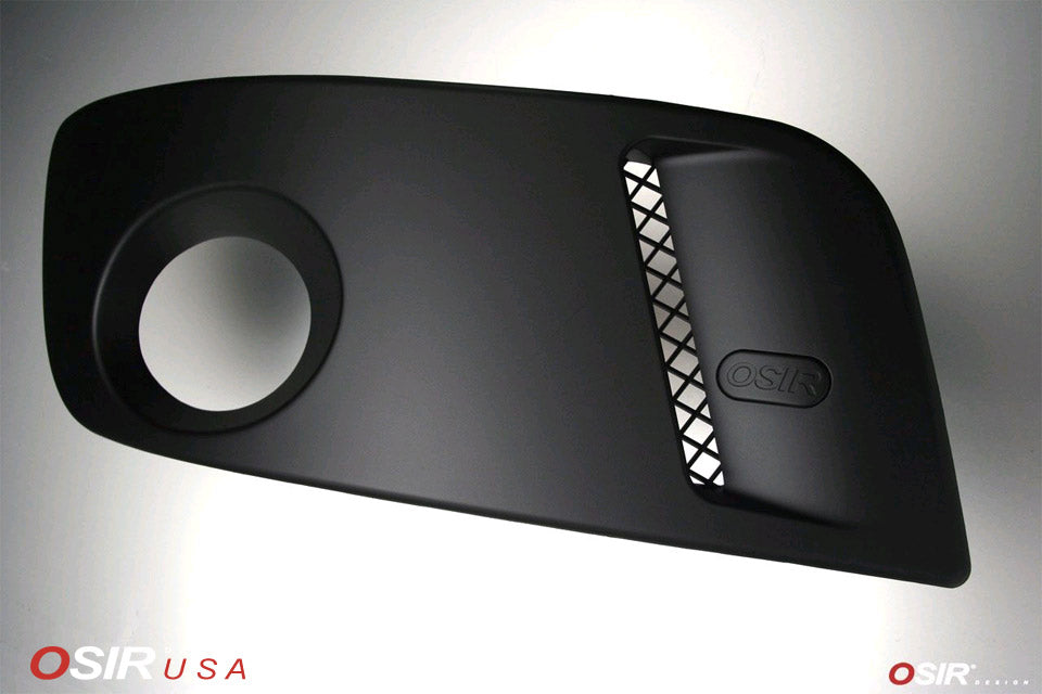 OSIR Design replacement vented fog light covers for the 2006-2009 VW GTI and 2006-2009 Jetta GLI MkV. Made from high temperature ABS with a black satin finish. Can be installed as is or painted to match your car. Easy installation, built-in clips with factory fitment and a single screw that secures the cover in factory position (no extra drilling need). Plastic mesh included. Allows fresh air to flow to the intercoolers. Includes both right and left covers.