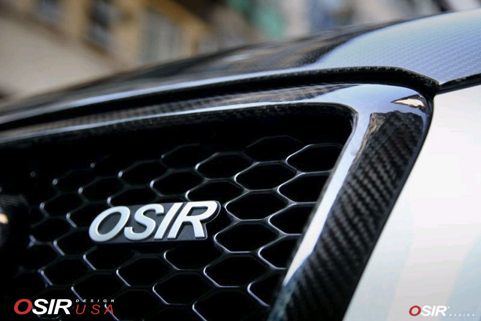 OSIR Design replacement front grille for the 2008-2013 Audi Q5, Q5 S-Line and SQ5 (B8 pre-facelift). Vacuum infused premium carbon fiber with a high gloss finish. Comes with standard metal mesh. Shown with optional plastic RS Style Honeycomb Mesh. Also shown with optional OSIR Design Logo Base Support Q5 B8 and OSIR Design Grille Badge.