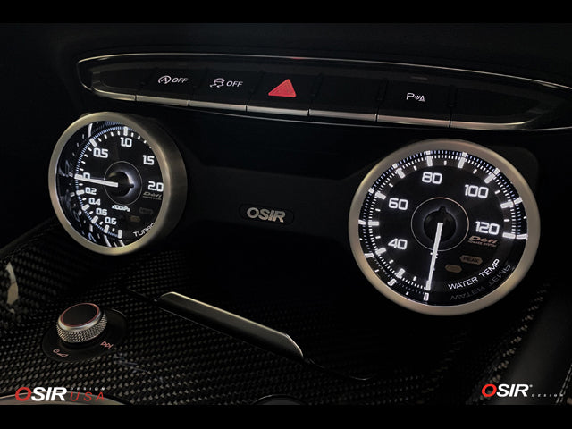 OSIR Design add-on dual gauge pod holder special designed for the 2015-2021 Audi TT, TTS and TT RS (8S Mk3) and the 2013-2020 Audi A3 / S3 / RS3 (8V). Can also be used as a universal gauge pod holder on other vehicles. Made from ABS with a satin black finish. The OSIR gauge pod can fit 60mm and/or 52mm gauges with included 52mm step down mounting rings. Gauges are not included.