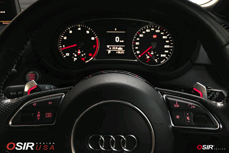 OSIR Design replacement paddle shifters for the Audi A1 / A3 / S3 / A4 / S4 / A5 / S5 / A6 / S6 / RS6 / A7 / RS7 / A8 / S8 / Q3 / Q5 / Q7. Comes with left and right side paddle shifter.