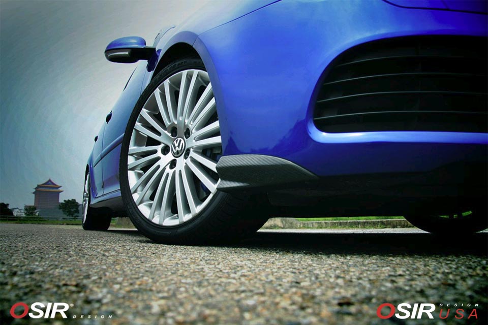OSIR Design add-on front corner splitters for the 2006-2009 VW R32 MkV. Vacuum infused premium carbon fiber with a choice of High Gloss finish or the SE Matte finish.