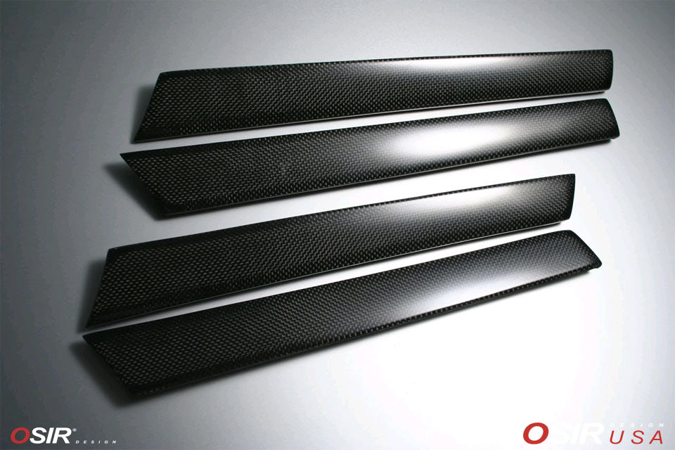 OSIR Design replacement interior door trim stripes for the 2004-2013 Audi A3, A3 S-Line, S3 and RS3 Sportback (8P / 8PF facelift and pre-facelift). Vacuum infused premium carbon fiber with a high gloss finish. Set of 4.