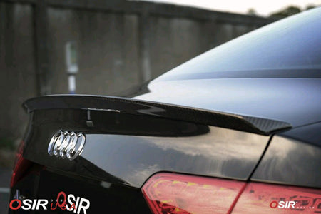 OSIR Design add-on Telson spoiler for the 2008-2015 Audi A5 and S5 (B8 / B8.5) with standard trunk without integrated rear spoiler. Vacuum infused premium carbon fiber with choice of a High Gloss finish or the SE Matte finish. Also available in paintable fiberglass which comes primed.