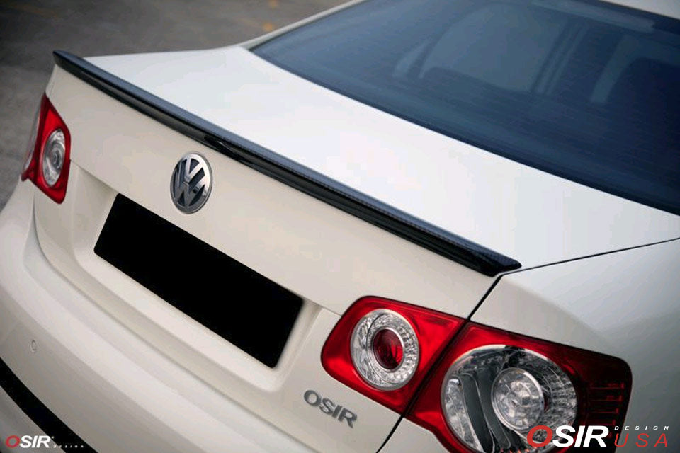 OSIR Design add on rear spoiler for the 2006-2010 VW Jetta MkV. Vacuum infused premium carbon fiber with choice of a High Gloss finish or the SE Matte finish. Also available in high quality paintable fiberglass that comes primed.