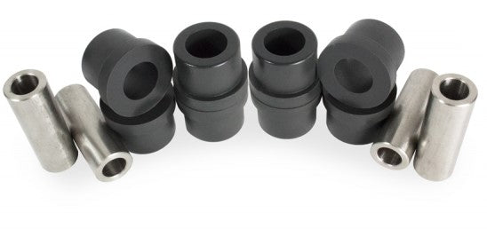 Stock rubber control arm bushings give a disconnected and mushy feel to the front suspension, especially when worn, as the bushing deflects more than it should. You get sloppy steering, vibrations, and poor handling which makes the car feel unstable. These urethane bushings are stiffer than stock rubber and will not deflect as much. This helps keep the alignment in check with less variation. The car feels more planted and confidence-inspiring. And a lifetime warranty means you'll likely never have to pay for another bushing ever again!