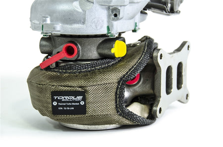 Torque Solution Thermal Turbo Blankets are highly effective at protecting components around your turbo by effectively blocking the heat produced by the hot back housing. Our blankets are made of protective insulated fiberglass layers and an external crushed volcanic rock layer.