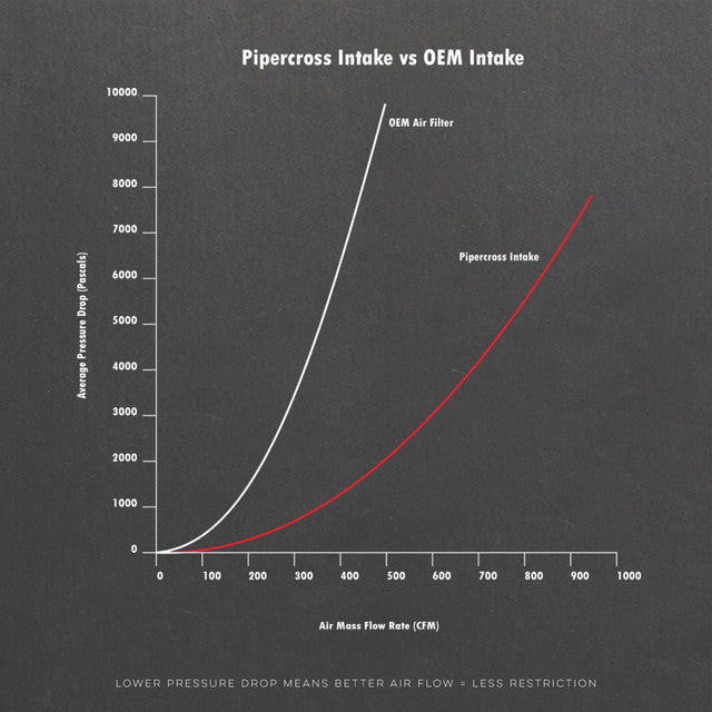 - Cold Air Induction: Pipercross Performance Induction Systems are engineered to draw cold air directly into the engine, a key factor in unlocking peak performance. Cooler air is denser, resulting in increased oxygen levels for more efficient combustion and enhanced power.